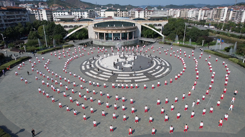 “起势——双手抱太极!”在武当山各中小学,音乐换成《高山流水》,3分40秒套路替代传统课间操。学生们在悠扬的乐曲中,跟随武术教练打着太极拳,一招一式有模有样。每一个动作的舒展、每一次呼吸的配合,都让孩子们感受到了传统武术的魅力和韵味。