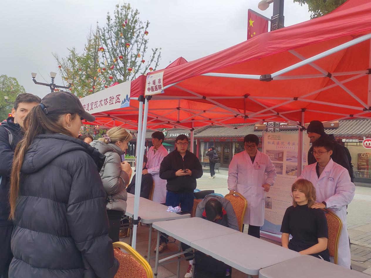上午10点,义诊活动开始。记者看到,活动现场精心设置了中医药适宜技术体验区、湖北省知名中医义诊区、十堰市知名中医义诊区、中医药养生文化产品市集区、生物医药道地药材成果展销区、智慧中医诊疗区、中药茶饮免费品鉴区等7大区域。在中医义诊区,各医院的专家望闻问切,耐心细致地为游客和市民提供疾病诊断和健康咨询,针对性解决各类健康难题。